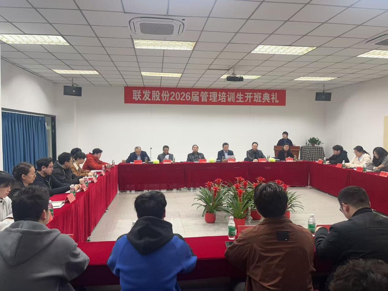 3月31日,联发股份2026届管培生开班典礼在联发纺织大楼二楼培训教室隆重举行。孔总、潘总、于总、唐总、张总等集团公司领导及2026届管培生共同参会。