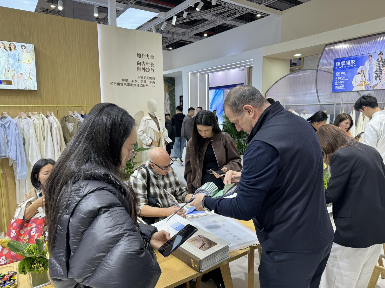 伊尼姿女装五大系列完整亮相,全面覆盖春夏核心需求与秋冬前瞻趋势,精准对接女性穿搭诉求,以丰富的产品体系赢得客商认可,多家意向客户现场达成合作。轻享居家以成品形式展出家居、配饰等全品类周边产品,进一步延伸面料应用场景,持续丰富品牌产品生态。